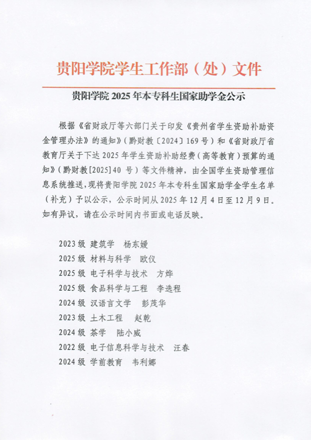 下一条:贵阳学院2024—2025学年“张武生感恩助学金”名单公示