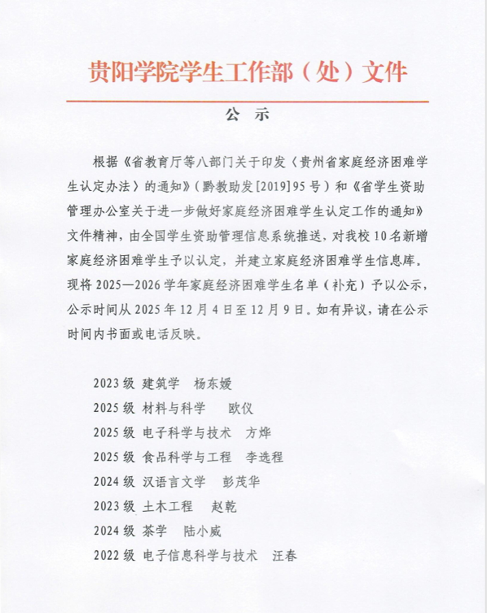 下一条:贵阳学院2025年本专科生国家助学金公示