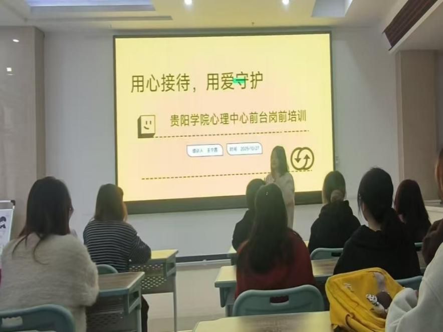 为规范贵阳学院心理咨询中心前台值班工作流程,提升服务质量,中心于2025年10月27日在“一站式”服务大厅开展“用心接待,用爱守护”为主题的前台值班人员岗前培训活动。活动由王宁茜老师主持,聚焦前台核心职责与心理咨询服务要点,助力新入职前台值班人员快速适应岗位。王老师从以下几个方面进行阐述: